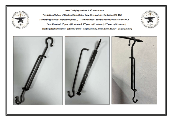 This is the piece (‘Trammel Hook’) that the Students are asked to make either on-site at Hereford on 8th March 2025 (9:00 AM) or at their own College under competition conditions and sent to Hereford for judging on 8th March 2025.