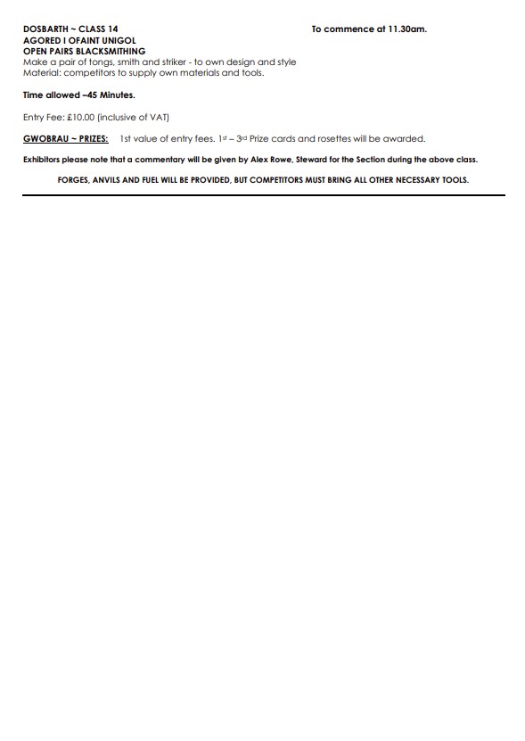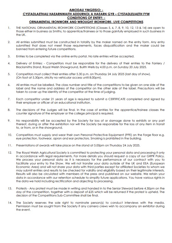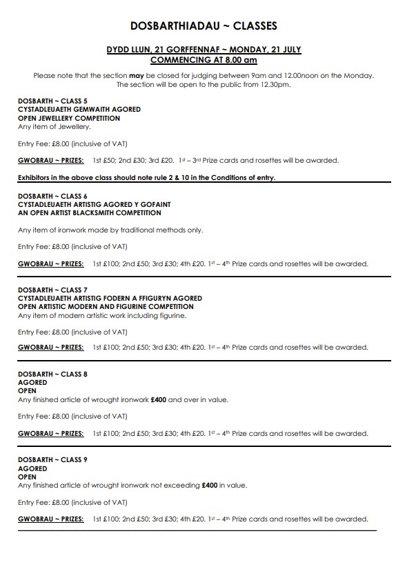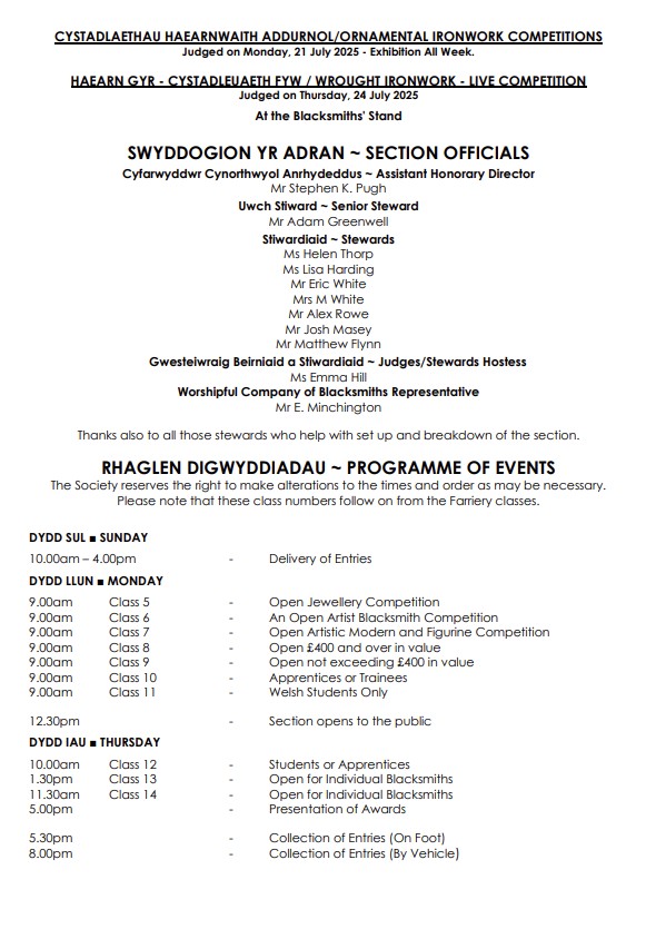 Schedule details below – (Online entries close 20th June), Link to schedule; https://championblacksmith.co.uk/wp-content/uploads/2025/05/2025-complete-ornamental-schedule.pdf