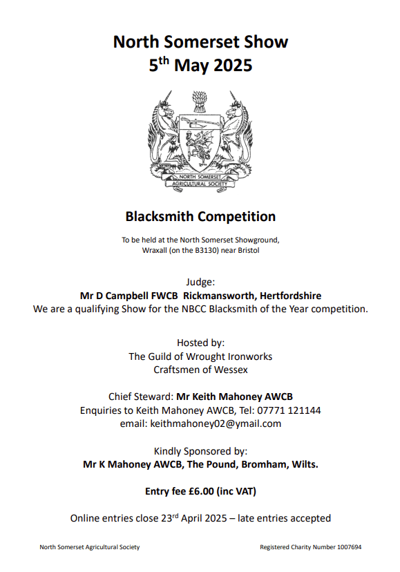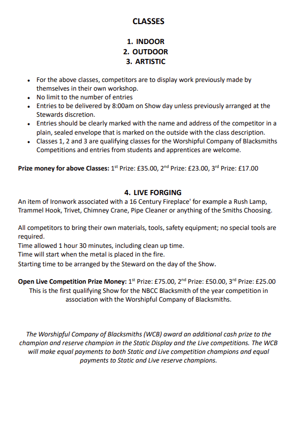 Schedule details below – (Online entries close 20th June), Link to schedule; https://championblacksmith.co.uk/wp-content/uploads/2025/05/2025-complete-ornamental-schedule.pdf